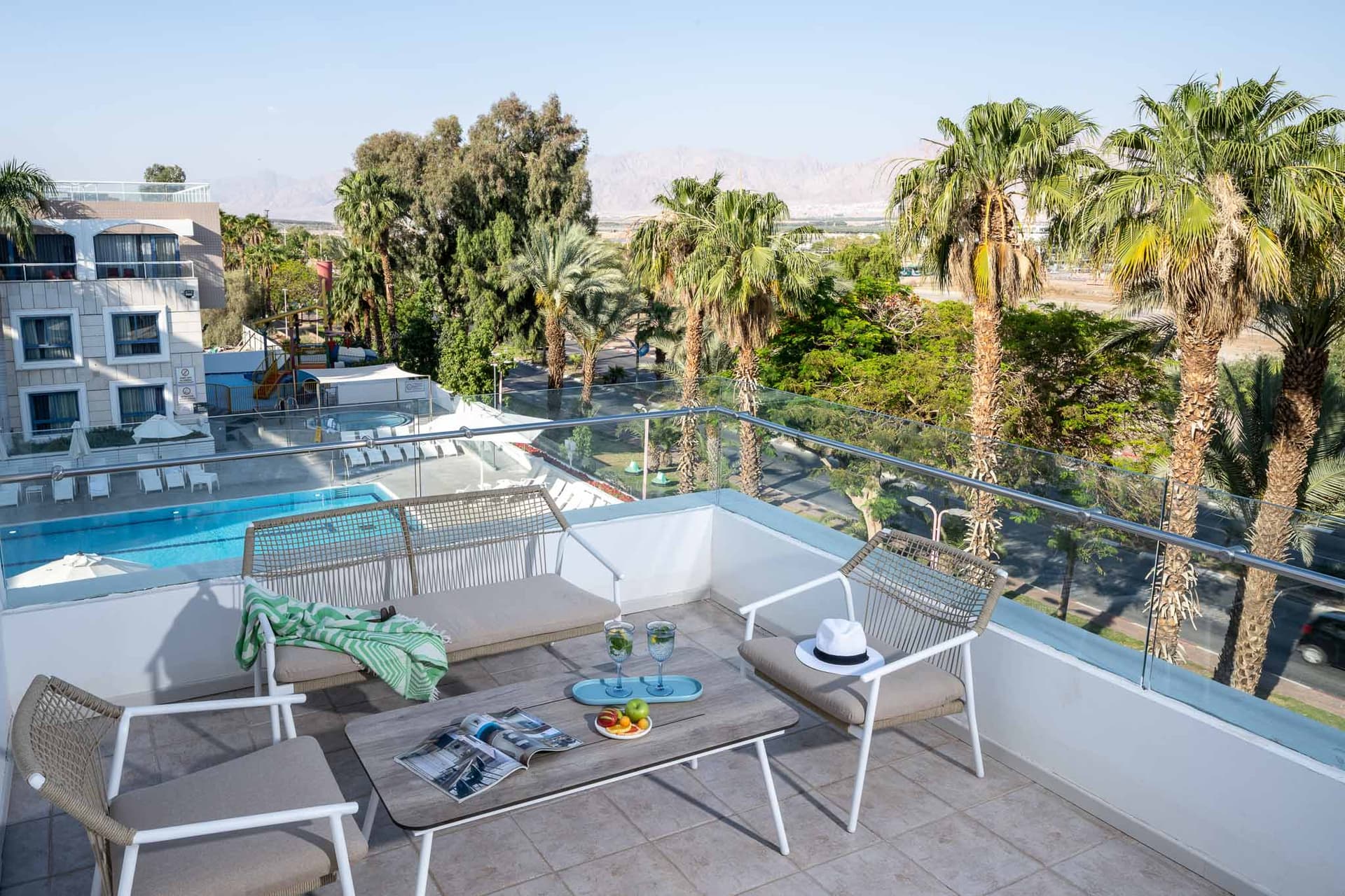 סוויטת גדולה במיוחד עם מרפסת שמשקיפה לבריכה, ומאפשרת למשפחות או קבוצות חברים ליהנות ממרחבים וחוויית אירוח מפנקת. יש בה שני חדרי שינה, בכל אחד מהם מיטה זוגית גדולה ונוחה, סלון עם ספה זוגית נפתחת, וחדר רחצה מרווח.