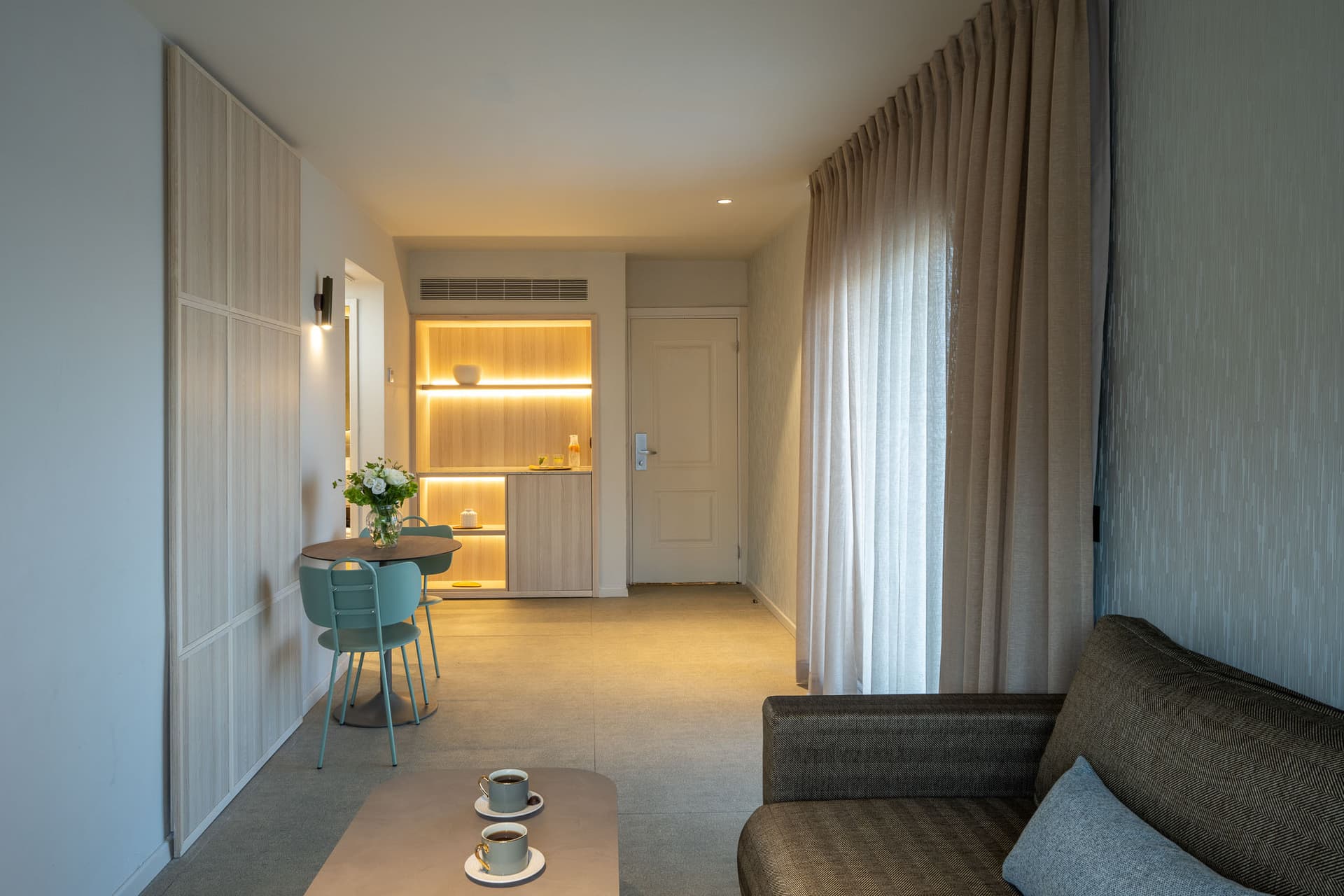 סוויטה מקסימה למשפחות וזוגות, עם מרפסת שמשקיפה למי הבריכה הכחולים. יש בה כל מה שצריך לנופש מושלם: חדר שינה עם מיטה זוגית נוחה, סלון עם ספה זוגית נפתחת וחדר רחצה מפנק.