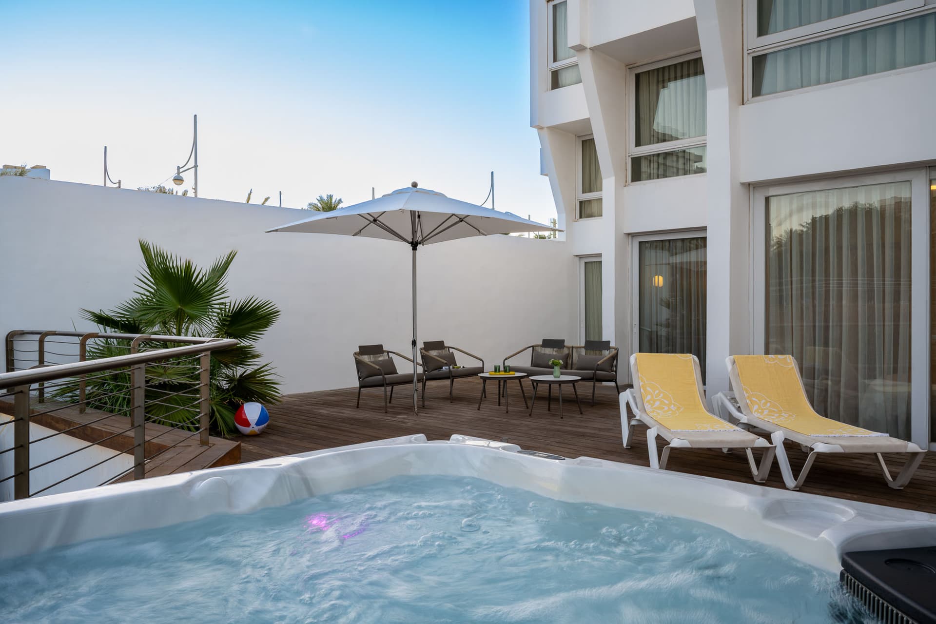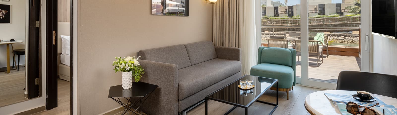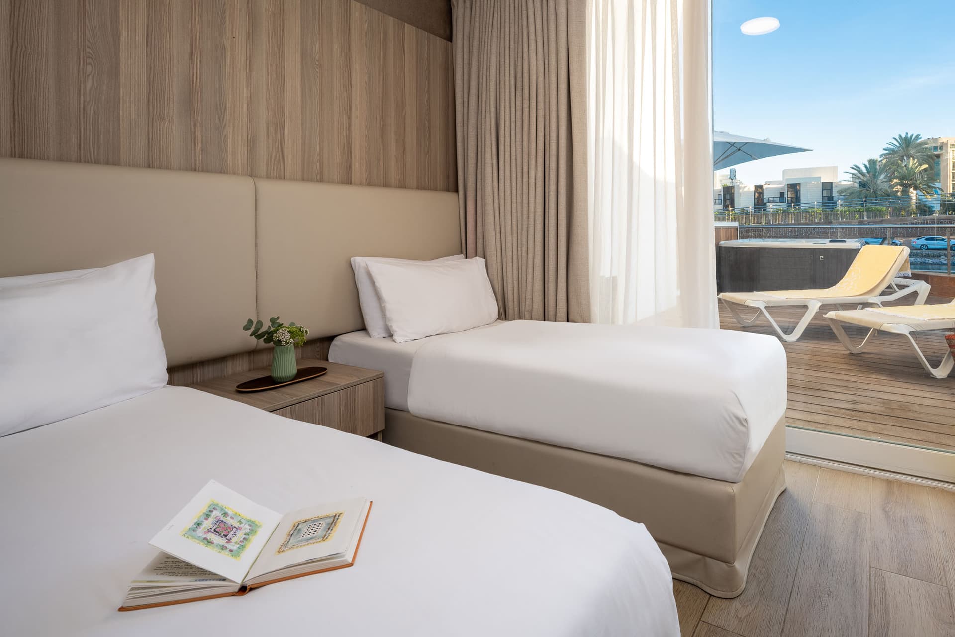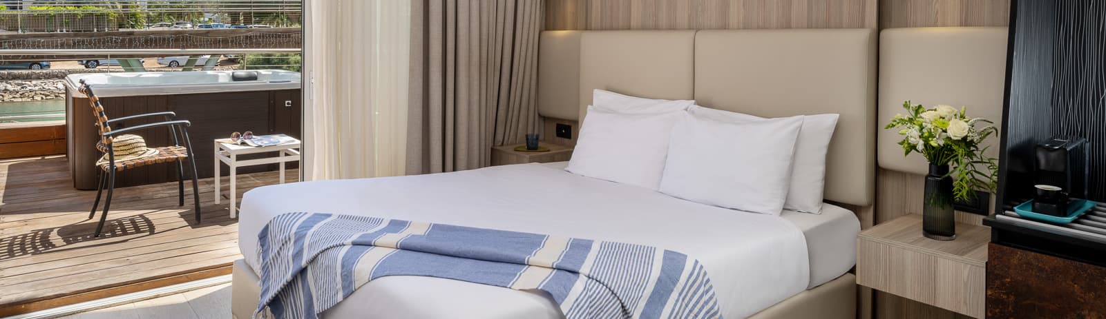 סוויטה גדולה למשפחות גדולות ולמי שאוהבים מרחבים. יש בה שני חדרי שינה, סלון עם ספה נפתחת, חדר רחצה מרווח ומרפסת דק ענקית עם נוף למרינה. במרפסת יש גם ג'קוזי פרטי, מיטות שיזוף ופינת ישיבה לחופשה מרגיעה