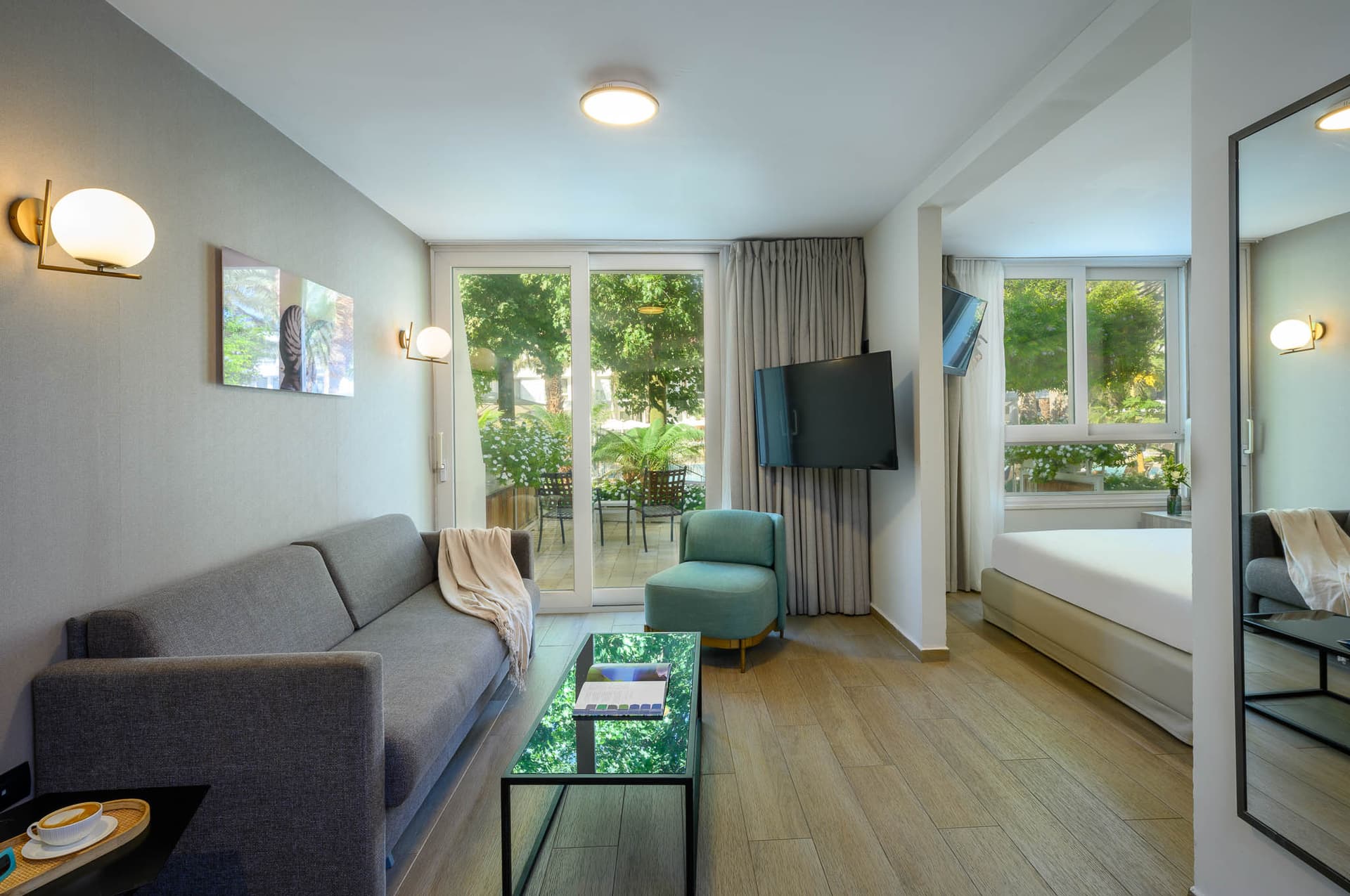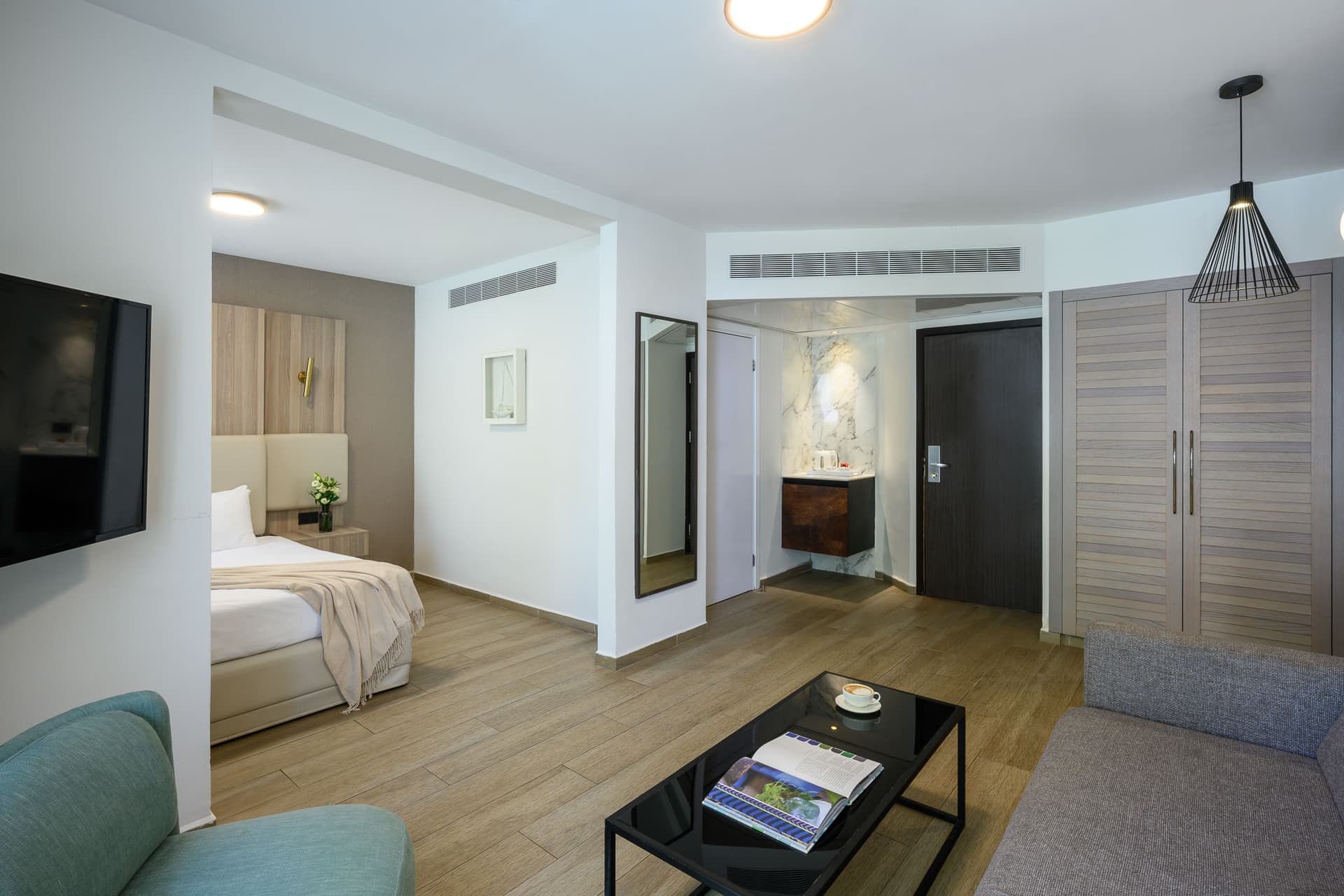 סטודיו מעוצב ונגיש לחופשה מפנקת בלי פשרות. יש בו חדר שינה עם מיטה זוגית, סלון עם ספה .זוגית הנפתחת למיטה וחדר רחצה מרווח