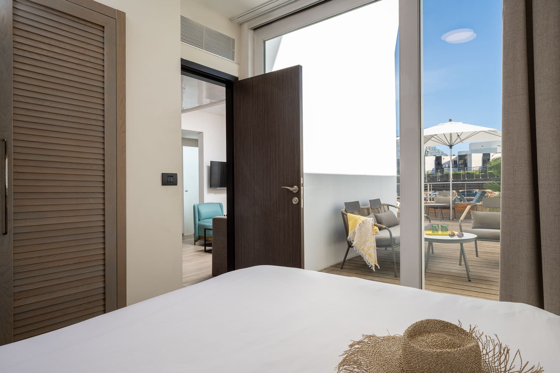 סוויטה גדולה בקומת הבריכה למשפחות גדולות או לקבוצת חברים שרוצים לצאת מהחדר ישר לבריכה. יש בה חדר שינה עם מיטה זוגית גדולה, סלון עם ספה נפתחת, ומרפסת מרווחת שמובילה לרחבת הבריכה