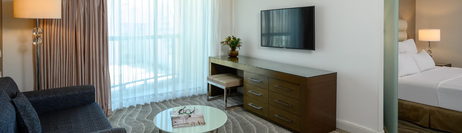 סוויטה מפוארת עם מרפסת גדולה, ג'קוזי ונוף עוצר נשימה. יש בה חדר שינה עם מיטה זוגית, סלון עם ספה זוגית נפתחת, פינת ישיבה, מטבחון וחדר רחצה. בהזמנה במחיר מלא נכנסים חינם לטרקלין אקזקיוטיב ולספא (18+, לא כולל טיפולים).